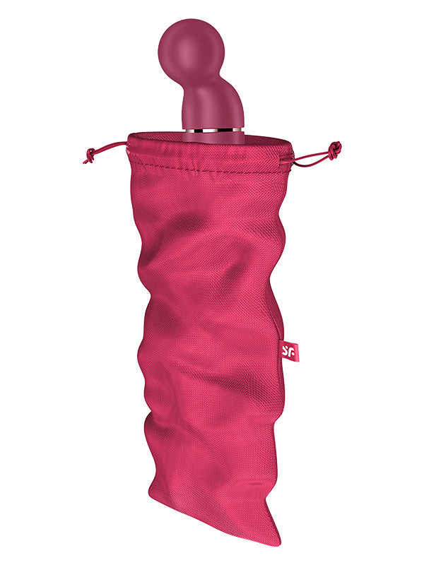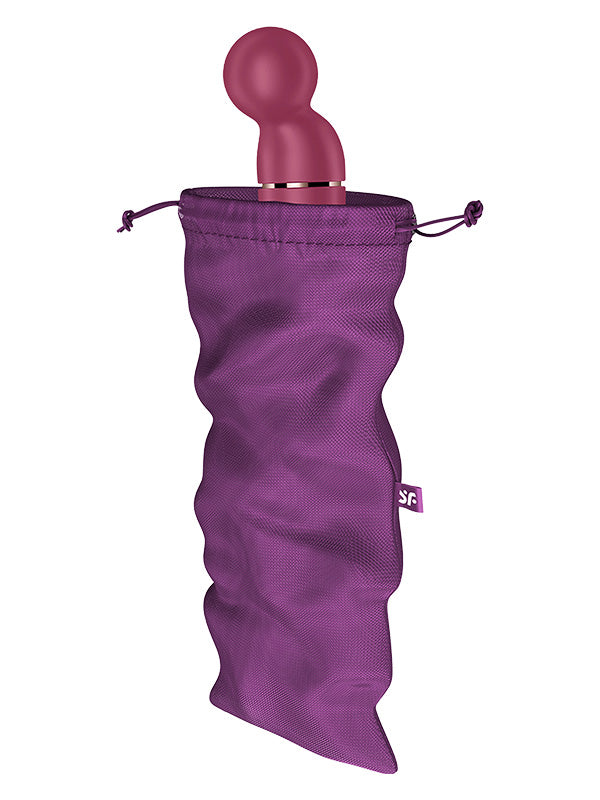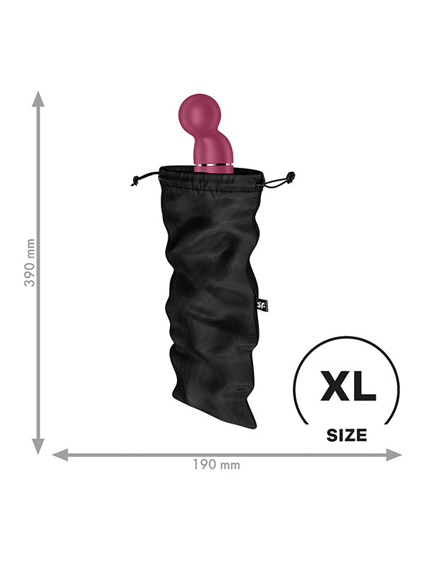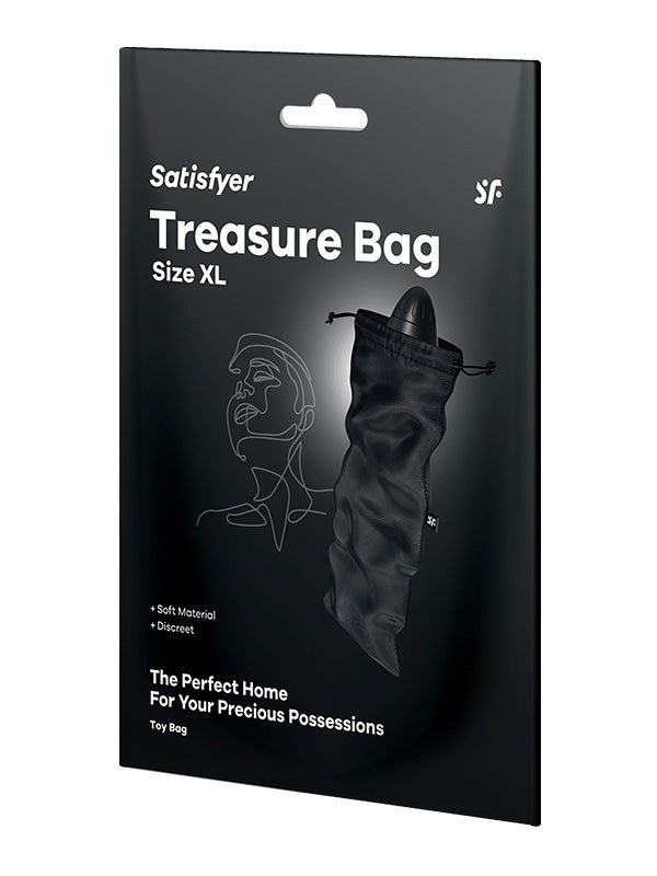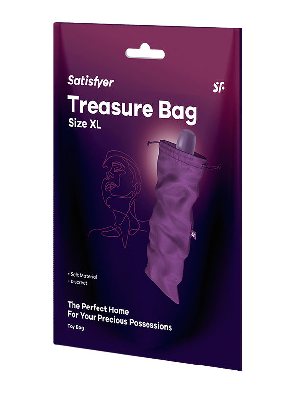 Sunteți în căutarea locului perfect pentru depozitarea jucăriilor? Vă prezentăm Treasure Bag în mărime XL din gama de huse pentru jucării Satisfyer ce oferă suficient spațiu pentru vibratoare universale și alte comori mari.
