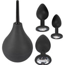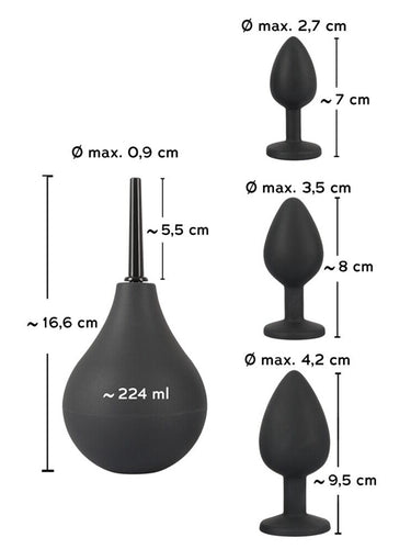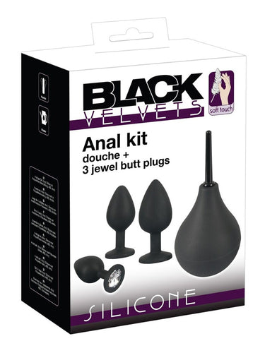 Setul perfect pentru o plăcere anală supremă! Black Velvets include 4 produse de înaltă calitate pentru a vă eleva experiența intimă: 1 x duș anal pentru pregătire și curățare, și 3 dopuri anale de diferite mărimi pentru plăcere și antrenament. Fiecare dop dispune de o bijuterie pe dop.