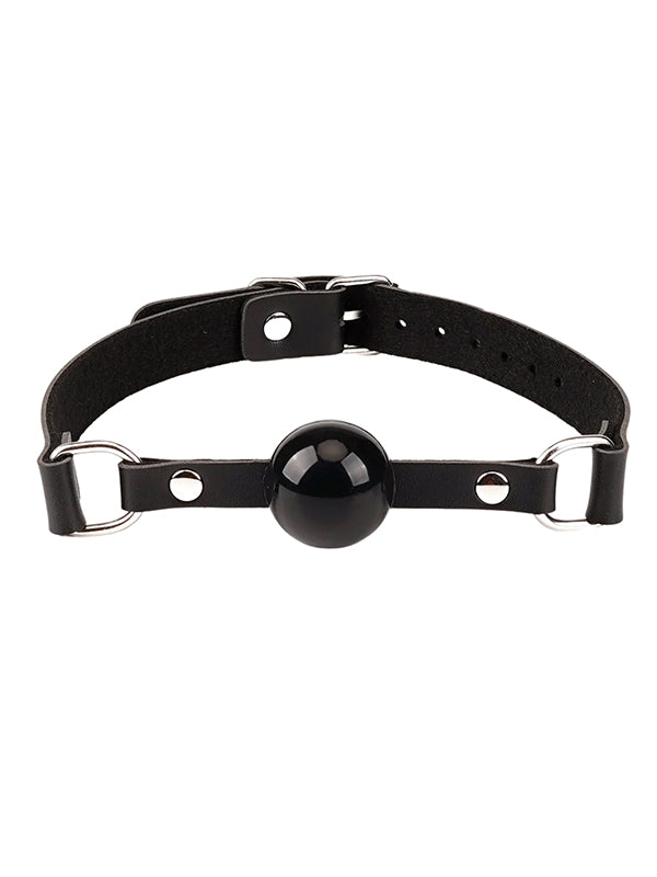 - Căluș cu bilă și curele negre din imitație de piele și închidere cu cataramă (lungime: 58 cm; mărime reglabilă: 40-52 cm; diametrul bilei: 3.5 cm)