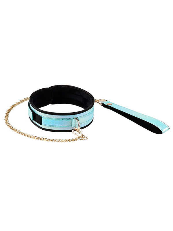 - Set bondage din 8 piese de culoare albastru irizat cu detalii aurii