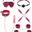 Ideal atât pentru începătorii curioși, cât și pentru cei cu experiență în BDSM, acest set include accesorii esențiale precum zgardă, lesă, căluș și mască pentru ochi, invitându-te să explorezi jocurile de supunere și plăcere. Curelele reglabile cu cataramă asigură o fixare sigură și confortabilă, iar lanțurile cu carabine detașabile oferă versatilitate totală pentru scenarii variate.