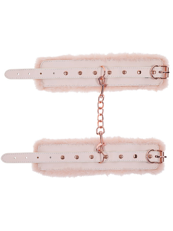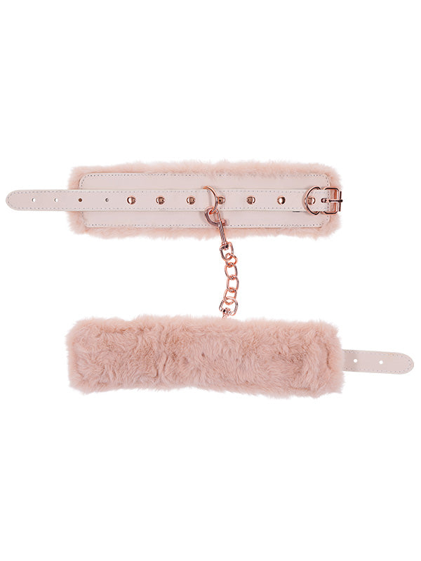 Învelite în cea mai moale blană artificială de culoarea piersicii deschise, cătușele oferă o senzație luxoasă pe piele, adăugând o notă de rafinament cu o strălucire subtilă. Ușor de purtat și de îndepărtat, închizătoarea asigură o eliberare tachinantă atunci când sunteți gata.