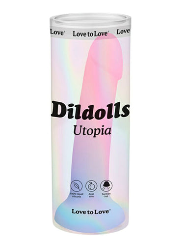 Love to Love Dildolls Utopia este un dildo colorat realizat din silicon neted și mătăsos. Forma sa flexibilă și curbată asigură o stimulare confortabilă a punctului G sau a punctului P. Dildoul este prevăzut cu o ventuză puternică, astfel încât poate fi atașat de orice suprafață netedă și plană pentru o plăcere fără utilizarea mâinilor. După utilizare, curățați dildoul cu apă caldă și săpun sau cu o soluție adecvată curățării jucăriilor sexuale.