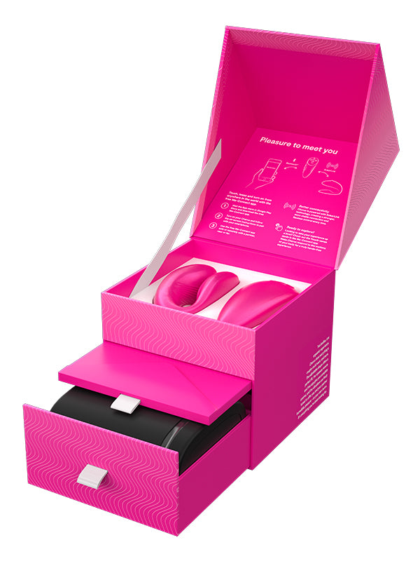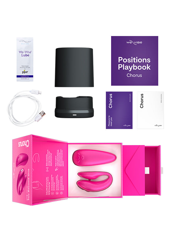 We-Vibe Chorus este cel mai nou și mai intuitiv vibrator pentru cupluri din colecția We-Vibe. Motorul inferior se poartă în vagin, stimulându-vă punctul G, în timp ce motorul superior vă stimulează clitorisul. Vibratorul are 2 încheieturi care vă permit să-i reglați forma după bunul plac. Măriți intensitatea vibrațiilor cu noua telecomandă Squeeze – cu cât strângeți mai tare cu atât vibrațiile sunt mai puternice și vice-versa.