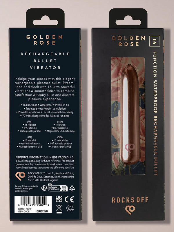 Rafinat, compact și surprinzător de intens, mini vibratorul tip bullet Rocks-Off Golden Rose este creat pentru momentele în care îți dorești plăcere concentrată, fără compromisuri. Designul elegant în nuanță rose gold ascunde un motor puternic, capabil să ofere senzații profunde într-un format discret și ușor de purtat oriunde.