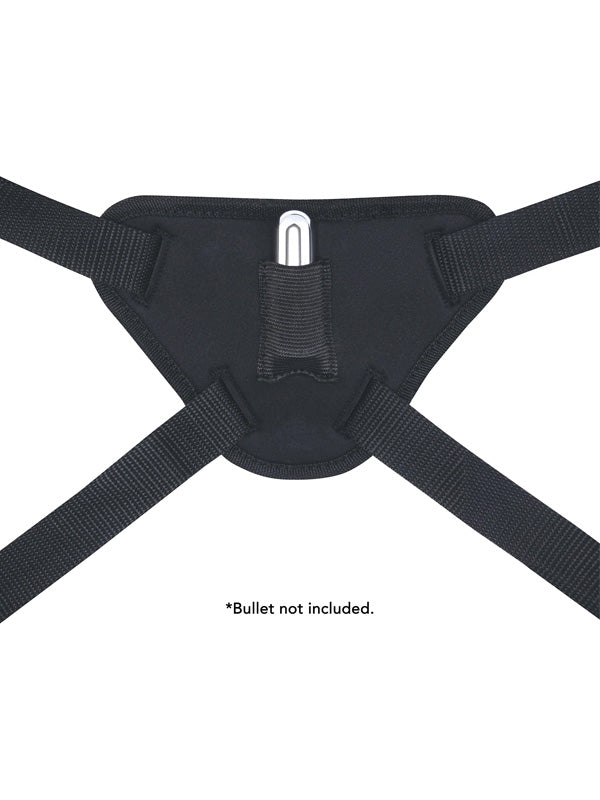 Un detaliu ingenios este buzunarul elastic din spatele bazei, unde se poate introduce un mini vibrator tip bullet (nu este inclus), pentru a intensifica experiența strap-on și a transforma fiecare mișcare într-o explozie de senzații.