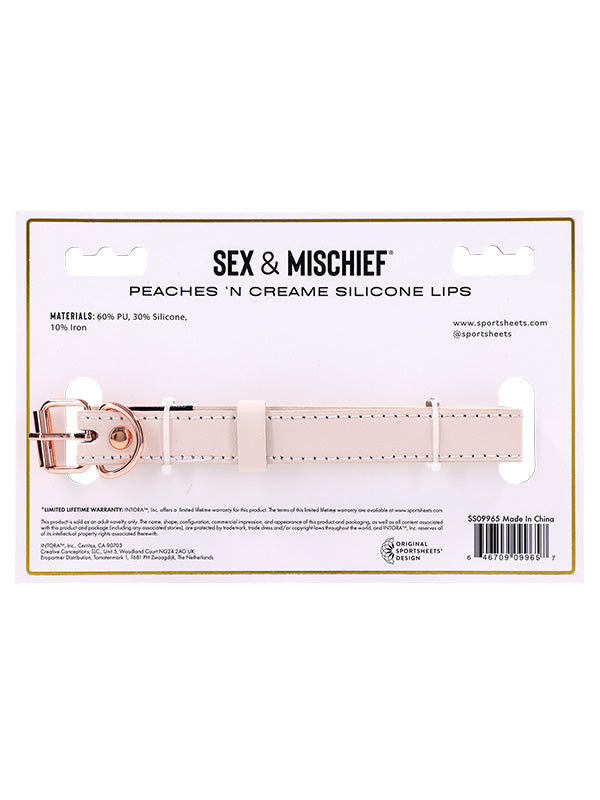 În formă de buze delicioase, într-o nuanță tentantă de piersică perlată, această capodoperă din silicon este atât de primitoare cât și seducătoare pentru jocul oral. Catarama din piele artificială asigură o potrivire sigură în timp ce vă lasă fără cuvinte. Perfect pentru începători sau entuziaști experimentați, călușul Peaches 'n CreaMe Lips adaugă o întorsătură jucăușă momentelor tale intime.