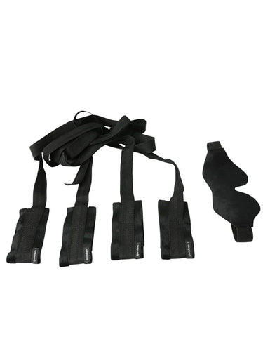 - Include: 4 manșete reglabile cu velcro pentru mâini și glezne (curele conectoare de 112 cm) + 1 mască moale pentru ochi