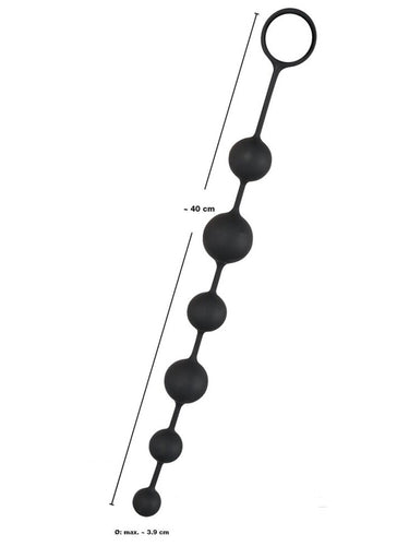 Plăcere pură cu fiecare dimensiune! Black Velvets prezintă șase mărgele negre cu diametre diferite pe un lanț lung din silicon. Toate mărgelele sunt de dimensiuni diferite, variind de la 2.3-3.9 cm. Lanțul de mărgele este flexibil și are o buclă de retragere la capăt pentru un joc anal sigur.