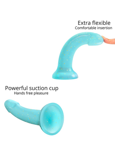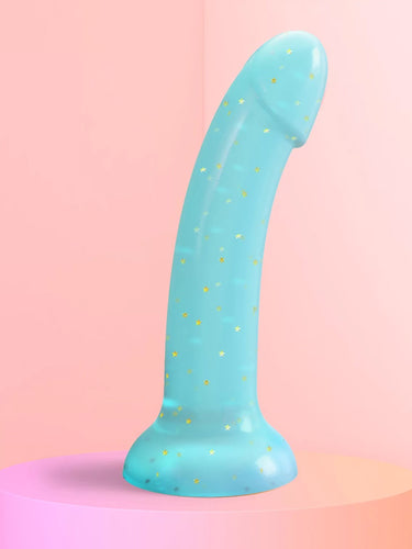 Love to Love Dildolls Nightfall este un dildo din silicon albastru transparent, neted și mătăsos, umplut cu stele aurii. Forma sa flexibilă și curbată asigură o stimulare confortabilă a punctului G sau a punctului P. Dildoul este prevăzut cu o ventuză puternică, astfel încât poate fi atașat de orice suprafață netedă și plană pentru o plăcere fără utilizarea mâinilor. După utilizare, curățați-l cu apă caldă și săpun sau cu o soluție adecvată pentru jucăriile intime.