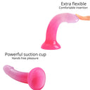 un Forma sa flexibilă și curbată asigură o stimulare confortabilă a punctului G sau a punctului P. Dildoul este prevăzut cu o ventuză puternică, astfel încât poate fi atașat de orice suprafață netedă și plană pentru o plăcere fără utilizarea mâinilor. După utilizare, curățați-l cu apă caldă și săpun sau cu o soluție adecvată pentru jucăriile intime.