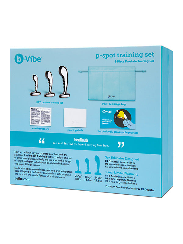 Set din 3 Piese b-Vibe Stainless Steel P-Spot Training Set