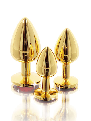 - Dop anal auriu din aluminiu decorat cu o bijuterie roșie