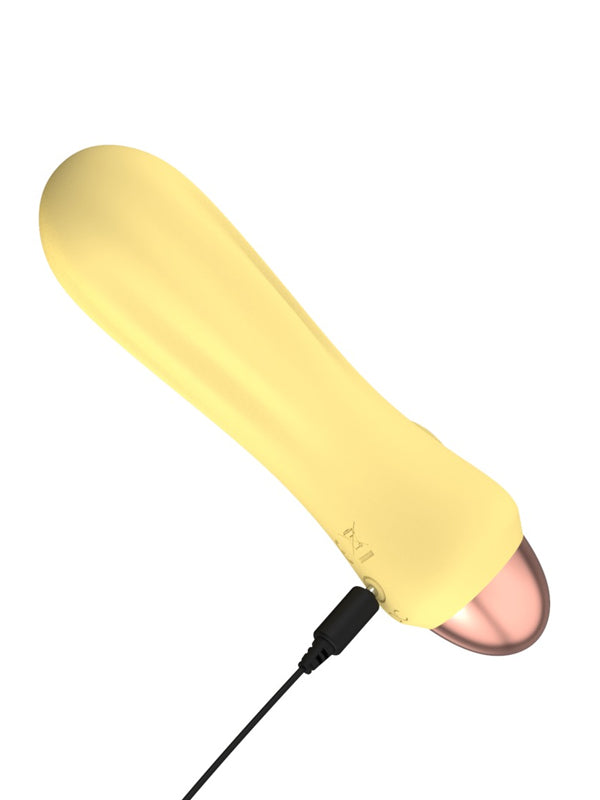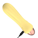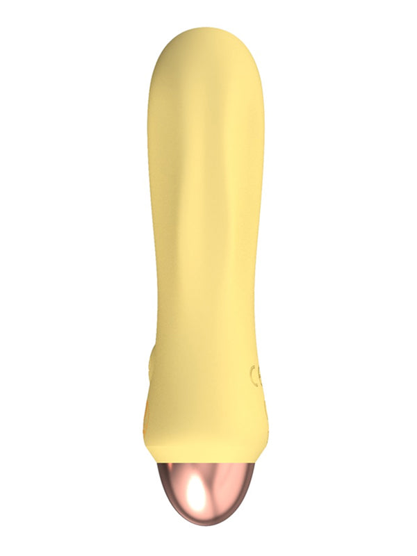 Mini vibratorul You2Toys din noua colecție Cuties este fabricat dintr-un silicon mătăsos, moale la atingere, în culoarea galben pastel de vară. Acesta are un design cu nervuri pentru o stimulare suplimentară, este mic și ușor de ținut în mână. Perfect pentru a călători cu tine. Vibratorul este impermeabil și este pregătit pentru o joacă în cadă sau la duș.