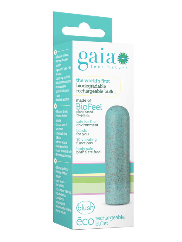 Acum reîncărcabil! Blush Gaia Eco Bullet este primul vibrator biodegradabil și reciclabil din lume! Primul vibrator ecologic din lume fabricat din PLA fără amidon petrolier, creat în mod responsabil! Mini vibratorul este reîncărcabil cu ajutorul cablului USB inclus și are 10 modele de vibrații puternice, unice. Este compact si ușor de transportat. Arată și funcționează ca orice altă jucărie din plastic dur. Gaia este neted la atingere și transferă minunat vibrațiile.