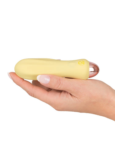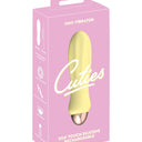Mini vibratorul You2Toys din noua colecție Cuties este fabricat dintr-un silicon mătăsos, moale la atingere, în culoarea galben pastel de vară. Acesta are un design cu nervuri pentru o stimulare suplimentară, este mic și ușor de ținut în mână. Perfect pentru a călători cu tine. Vibratorul este impermeabil și este pregătit pentru o joacă în cadă sau la duș.