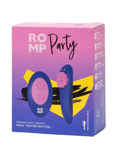 Romp Party este un vibrator purtabil în lenjeria intimă, controlat de la distanță, conceput pentru stimularea în mișcare a clitorisului. Cu 7 niveluri de intensitate, această jucărie discretă se fixează ușor pentru aventuri kinky în jocul solo și în cuplu.
