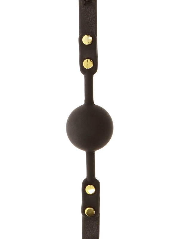 Pășiți în lumea captivantă a jocului bondage cu Taboom Vogue Ball Gag. Designul său sexy, negru, cu detalii aurii, adaugă o notă de glamour și farmec oricărui cadru intim.
