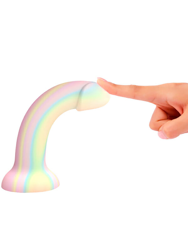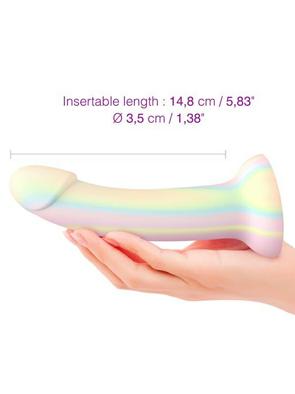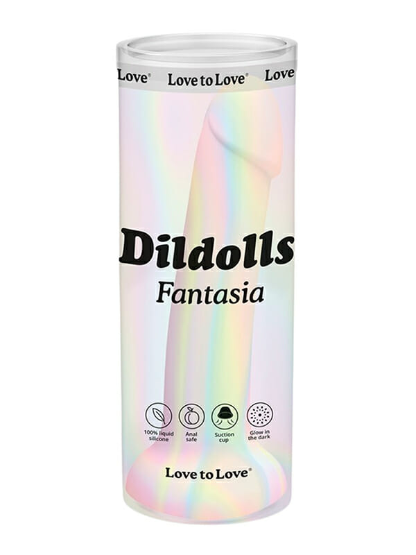 Love to Love Dildolls Fantasia este un dildo din silicon neted și mătăsos, aranjat în tonuri pastelate – chiar strălucește în întuneric! Forma sa flexibilă și curbată asigură o stimulare confortabilă a punctului G sau a punctului P. Dildoul este prevăzut cu o ventuză puternică, astfel încât poate fi atașat de orice suprafață netedă și plană pentru o plăcere fără utilizarea mâinilor. După utilizare, curățați dildoul cu apă caldă și săpun sau cu o soluție adecvată pentru curățarea jucăriilor sexuale.