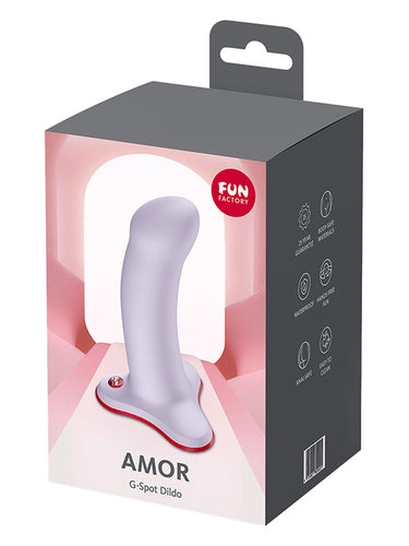 Datorită bazei cu ventuză solidă și designului ergonomic, Amor se fixează sigur pe suprafețe netede, oferind posibilitatea de joacă hands-free. Vârful ușor curbat susține stimularea controlată, iar baza extrem de plată și subțire asigură un contact apropiat cu corpul atunci când este utilizat cu un ham strap-on.