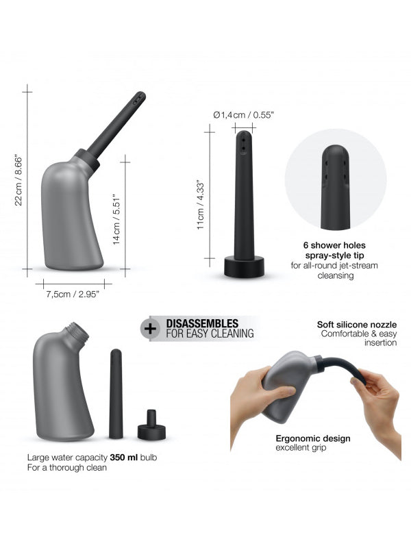 Duș anal Dorcel Douche Mate cu un rezervor de apă de 350 ml. Vârful flexibil este echipat cu 6 jeturi multidirecționale pentru a vă bucura cu o curățare la 360°. Forma ergonomică facilitează prinderea și utilizarea din față sau din spate.