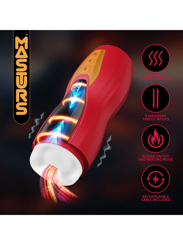 - Masturbator multifuncțional cu funcții de încălzire, vibrație și mișcări thrusting