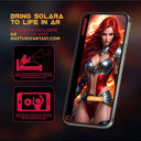Solara este o vrăjitoare a focului – o fantezie incandescentă, născută într-o lume de dragoni, vârfuri de lavă și păduri mistuite. Frumoasă și periculoasă, dansează cu riscul și transformă dorința într-un joc al temperaturii și al controlului. Castelul ei fierbinte devine scena unor întâlniri unde pasiunea crește treptat, iar fiecare detaliu contribuie la tensiune.