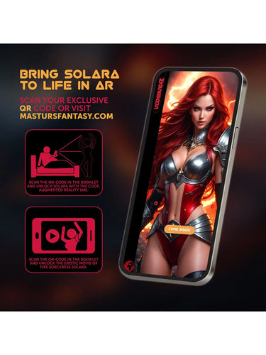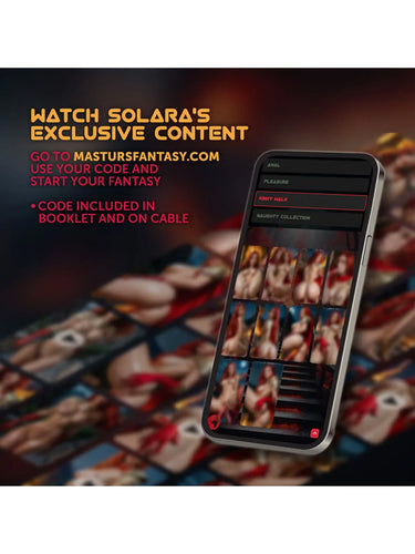 Broșura inclusă în ambalaj conține codurile QR și un cod unic care te ghidează către lumea Solarei. Alege experiența AR sau filmul erotic și lasă fantezia să se aprindă, pas cu pas.