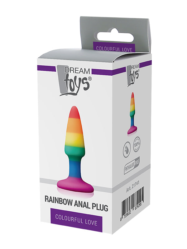 Dopul anal Dream Toys Colourful Love este fabricat din silicon lichid, sigur pentru corp, moale și fără ftalați. Dopul are culori strălucitoare de curcubeu și o bază cu ventuză ce se lipește ferm de orice suprafață plată și netedă.