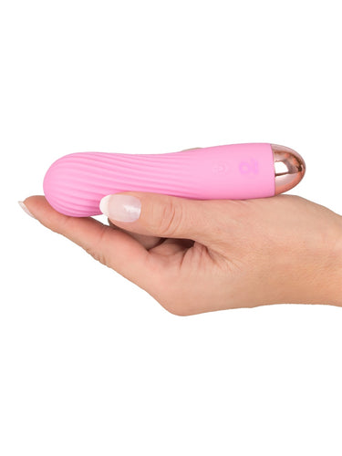 Mini vibratorul You2Toys din noua colecție Cuties este creat dintr-un silicon moale și mătăsos la atingere, de culoare roz și are o textură ondulată simulantă. Este mic, ușor de ținut și de manevrat. Perfect pentru a fi luat cu tine în călătorii. Vibratorul este impermeabil și gata de distracție în cadă sau la duș.