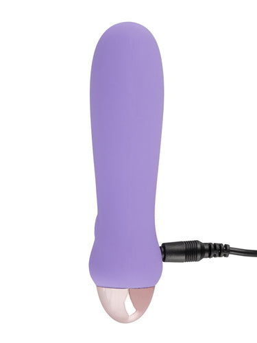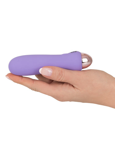 Mini vibratorul You2Toys din noua colecție Cuties este creat dintr-un silicon moale și mătăsos la atingere, de culoare violet pastel și ușor pronunțat în partea de sus a membrului. Este mic, ușor de ținut și de manevrat. Perfect pentru a fi luat cu tine în călătorii. Vibratorul este impermeabil și gata de distracție în cadă sau la duș.
