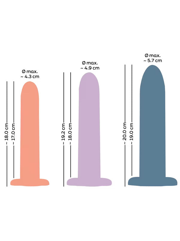 Datorită dimensiunilor generoase, acest set se adresează în special utilizatorilor cu experiență, deja familiarizați cu diametre mai mari, care își doresc o senzație mai intensă de stretching și plenitudine. Fiecare dilatator este realizat din silicon sigur pentru corp, cu o suprafață catifelată, plăcută la atingere, pentru o inserare mai ușoară și un confort sporit.
