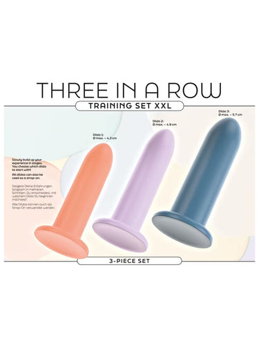 Setul de dilatatoare You2Toys Three in a Row este conceput pentru stretching, antrenament progresiv și explorare controlată. Setul include 3 dilatatoare, în culori pastelate, de dimensiuni și greutăți diferite, ideale pentru o acomodare treptată și pentru antrenamentul anal sau al planșeului pelvin.