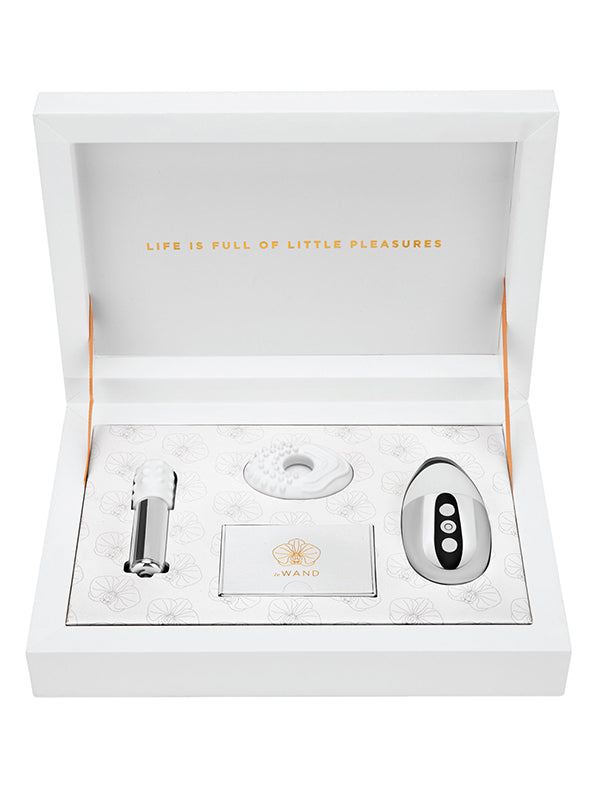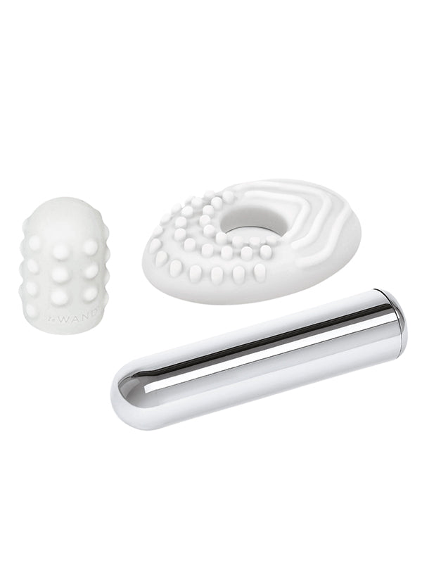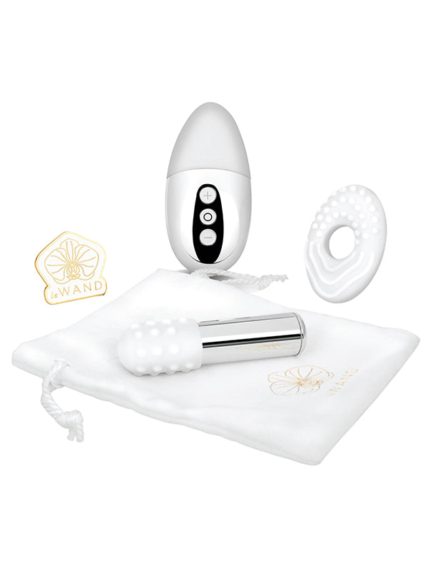 - Include: Vibrator reîncărcabil Le Wand bullet, vibrator reîncărcabil Le Wand Point, manșon și inel din silicon texturat, pin Le Wand, husă de călătorie Micro-Suede, cablu de încărcare USB